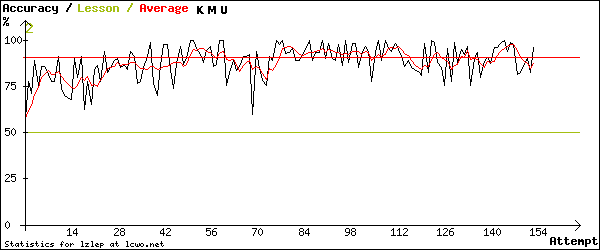 The Koch course on LCWO.net also produces lesson-by-lesson graphs to show progress, and shortly before I abandoned the course I combined the graphs for (most of) the lessons I'd attempted into the animated GIF below: